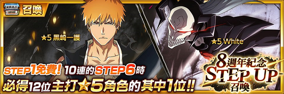 8週年紀念角色黑崎一護(8週年紀念ver.)與White(8週年紀念ver.),將於STEP UP召喚中登場!