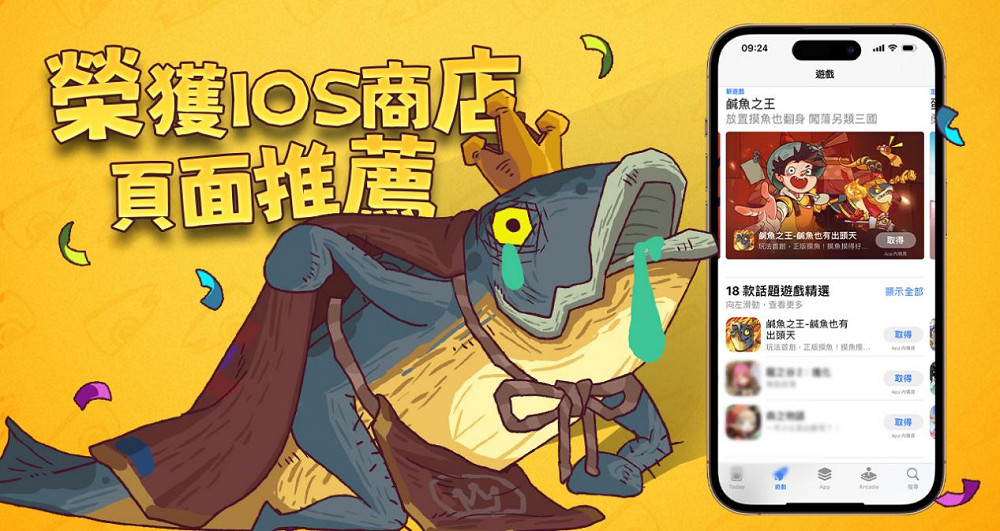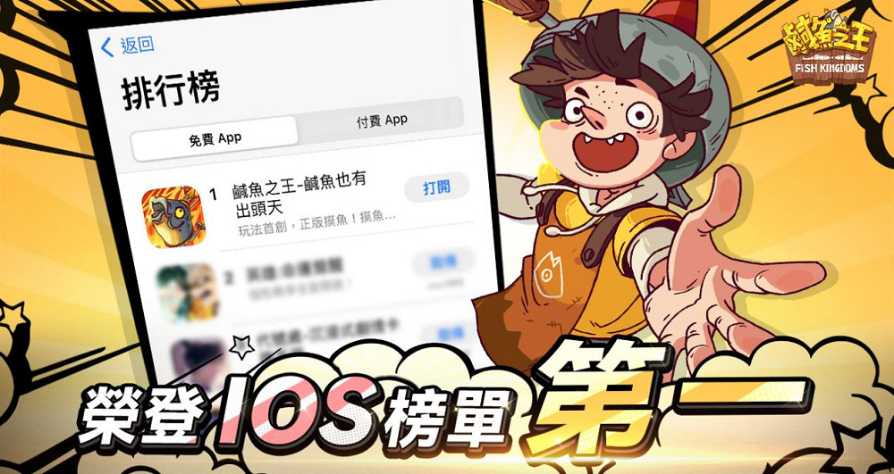 (圖一:《鹹魚之王》上線一日即獲App Store免費榜冠軍及遊戲推薦)
