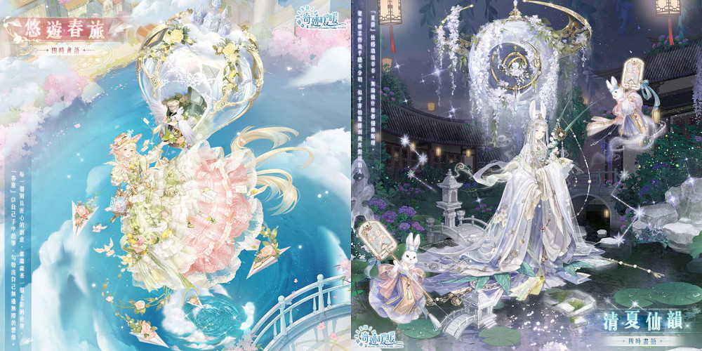全新活動「古樓綺宴.四時畫語」將從3日起至18日止限時登場。活動期間內,搭配師進入畫境尋覓四時之物,可獲得專屬頭像掛飾及「靈犀寶鏡」。搭配師使用「靈犀寶鏡」探尋畫境即可獲得對應套裝隨機配件。當集齊套裝「悠遊春旅」、「清夏仙韻」、「流金秋宴」與「濯雪凜冬」後,還可領取對應季節的四季之靈動態萌寵獎勵。