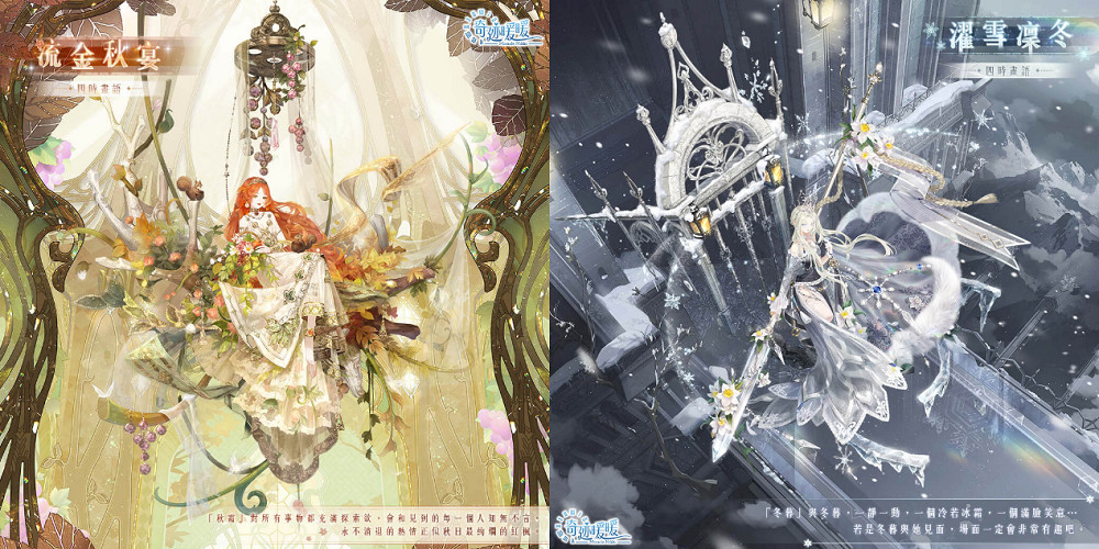 精美套裝「流金秋宴」(左)與「濯雪凜冬」(右)。