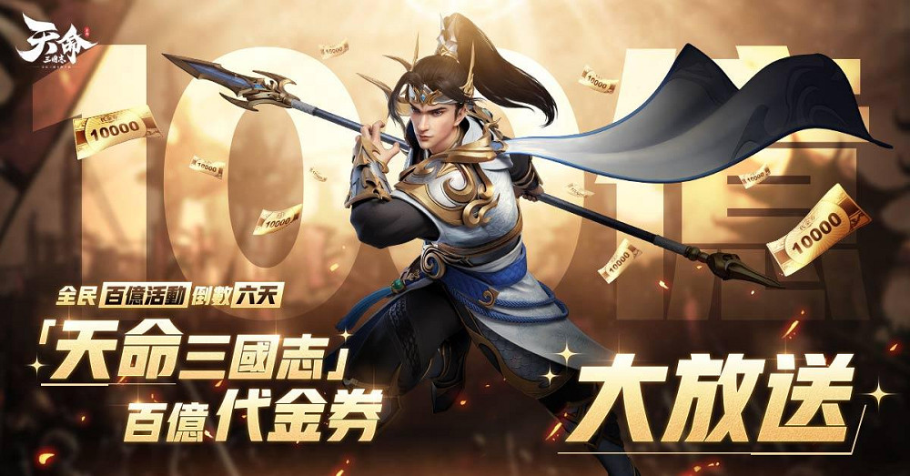 遊戲上市在即,百億代金券大放送進入到白熱化倒計時階段,每日打卡抽獎百億代金券領到手軟!官方粉絲專頁即將開啟倒數計時活動,各位主公快邀請好友參與活動一起倒數,贏Ducky電競鍵盤、三星無線耳機、三星摺疊屏手機、PlayStation 5、DJI Air 3航拍機等豪華獎品!天命三國征途路,百億資源領到爽,快坐上這趟百億福利的末班車吧!