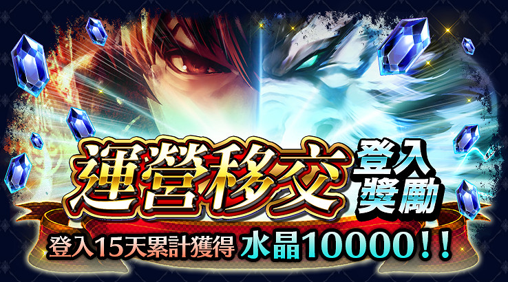 為紀念運營移交,現正舉辦的豪華登錄獎勵活動中,玩家可獲得高達10,000的水晶。另外,新角色「賢聖拉古洛博斯」和新的聖物「古代精靈國『瑪瑪・納爾』」也已強勢實裝,敬請留意。