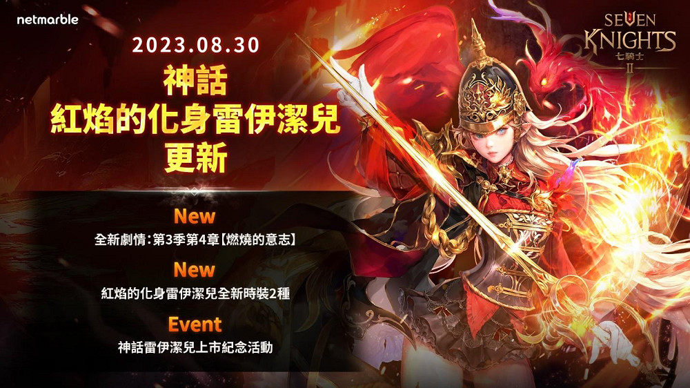 身為全球領先、高品質手機遊戲開發與發行公司的網石集團(Netmarble Corporation)今(31日)宣布,旗下RPG手遊《七騎士2》迎來全新更新。本次更新包含神話級別英雄「紅焰的化身雷伊潔兒」、全新主線劇情、時裝與眾多活動供玩家享受。