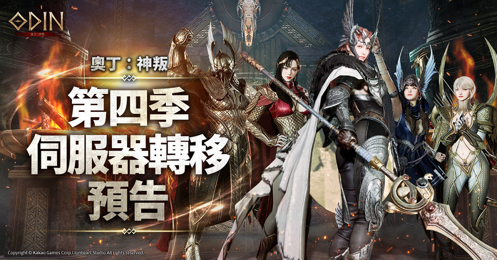 本季轉移時間將從 9月18日(一)12:00 進行,持續至 9月25日(一)23:59 為止。而伺服器轉移券也將分成第一期與第二期時間點來販售。詳細的活動時程、票券販售時間等,請戰士們前往參閱官方網站或官方粉絲團公告。(👉[第四季伺服器轉移時程公告]:https://tw-odin.kakaogames.com/newsfeed/update/view?id=1081 )