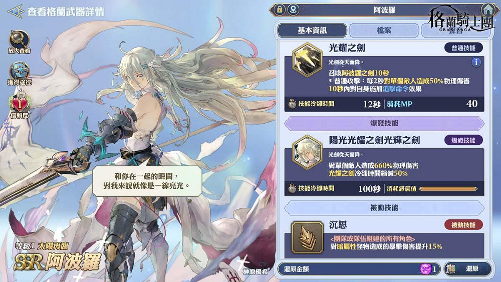 圖片5:里昂專屬SSR格蘭武器「阿波羅」