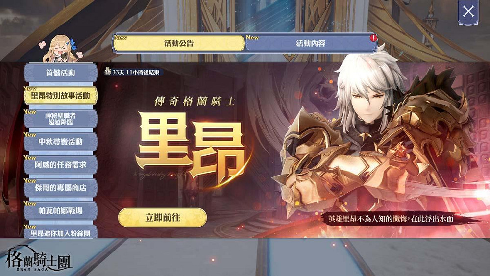 首款3A Lite大世界卡牌RPG《Gran Saga:格蘭騎士團》於今(21)日開放全新傳說格蘭英雄「里昂」,並同步開放專屬劇情活動及格蘭武器,除此之外300日特別活動卡池與主線劇情第11章也將同步開放。