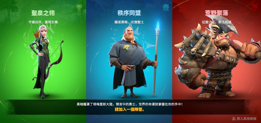 在《萬龍覺醒》的世界中,玩家可以自由選擇三大不同特色陣營之一:聖泉之翎、秩序同盟和荒野聚落。玩家所選擇的陣營將影響初始英雄夥伴、城市外觀、兵種特色,甚至是部隊和生產的加成數值等。