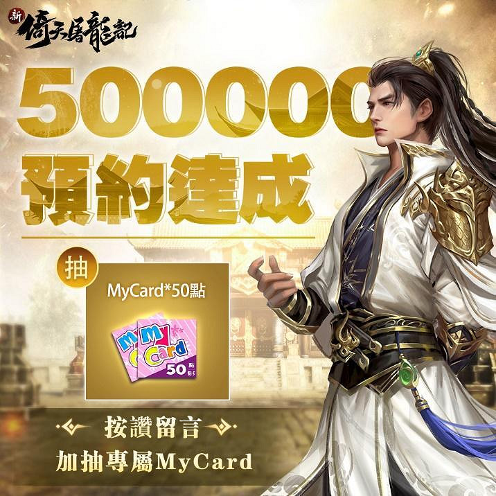目前《新倚天屠龍記》事前登錄人數已達 50 萬人,距離最高預約目標的 120 萬人次,還剩一半左右路程,讓我們期待人數達成 120 萬解鎖 iPhone15 Pro Max、PS5、Switch、冰島雙人來回機票等超級好康!更多遊戲福利與訊息,敬請關注官方粉絲專頁和後續新聞資訊! 武林至尊,寶刀屠龍,號令天下,莫敢不從,倚天不出,誰與爭鋒! 快來一起加入《新倚天屠龍記》迷人的武俠世界吧!