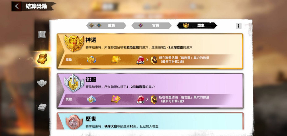 「塔梅里斯」大陸的霸主即為在每個伺服器中,最優先成功淨化「烈焰巨龍」的聯盟,當成功淨化時不僅可以取得大量的豐厚獎勵,此外也會取得該伺服器的排名榮耀,這名大陸霸主將會是你嗎?