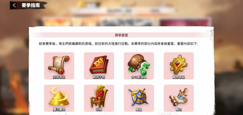 每條道路都有盡頭,每段旅程都會有終點。當賽季結束後,領主們將揭開《萬龍覺醒》大世界中新的面紗,邂逅全新的大陸、英雄、故事與征戰目標。領主們將有機會到新大陸建構全新的社交關係,昨日的敵人有可能成為今日的朋友,當然也可以與老戰友,延續曾經的輝煌及榮耀。並且在新的賽季中將會重置包含:「英雄等級」、「寶物等級」、「戰術手冊」、「命令點道具」、「魔法塵埃」、「治療藥劑」、「政策」、「聲望」、「戰功」、「魔龍的試煉」等。