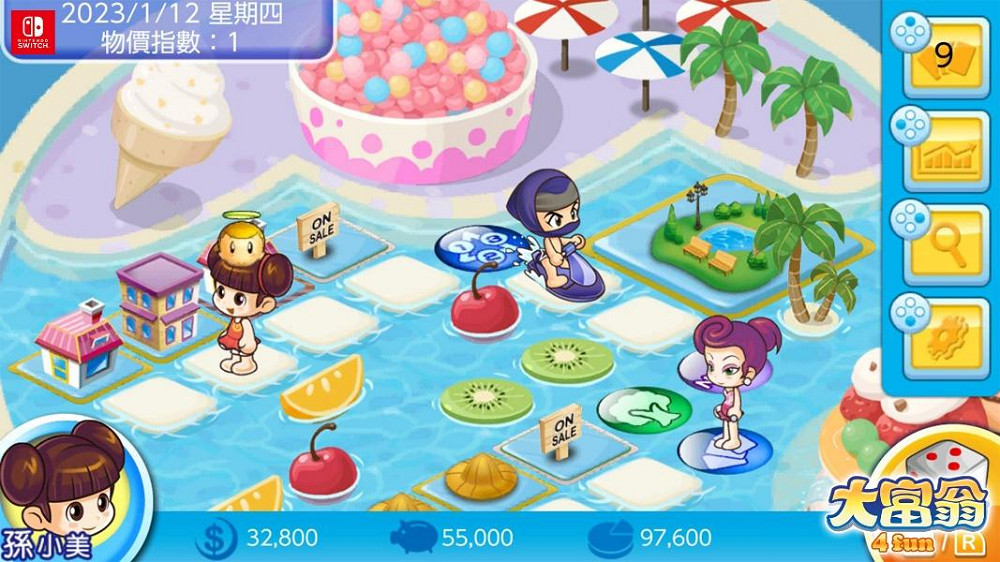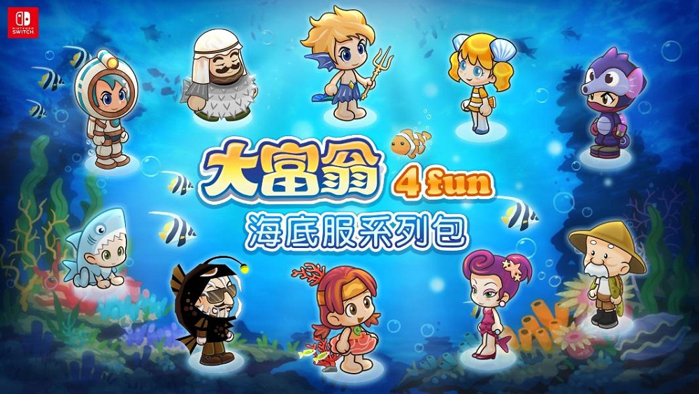 這次《大富翁4Fun》Switch版為了慶祝首次更新並感謝玩家喜愛,更新就送全新角色及新地圖-夏季慶典地圖!大宇資訊表示,為了搭配這次遊戲更新,更是加碼推出了8套超豪華DLC, 其中包含服裝造型系列(泳裝系列包、海底服系列包、海底服系列包)、環遊世界交通包等,各式角色超卡哇伊的造型及坐交通工具你來收集!當然喜歡挑戰多樣地圖的超級玩家,也不能錯過超值地圖組合包(寶藏島地圖、水上世界地圖、海底世界地圖), 除了主題地圖外,還搭配了孫小美特殊主題造型,讓你贏的漂亮又吸睛。