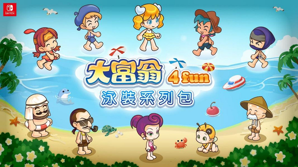 大宇資訊旗下《大富翁4Fun》自登陸Switch以來,增加不少年輕玩家,本作不僅保留《大富翁4》的多位經典角色、股市投資、地產模式及各式互動小遊戲,深受7、8年級玩家喜愛,如今更是宣布遊戲更新贈送新角色及夏日慶典地圖,不僅如此,為了讓各位玩家不只吸睛比造型還玩得更盡興!更是推出8款DLC豪華陣容,豐富的角色造型及交通工具,搭配多款地圖隆重上市,喜愛大富翁遊戲的玩家,千萬不能錯過!