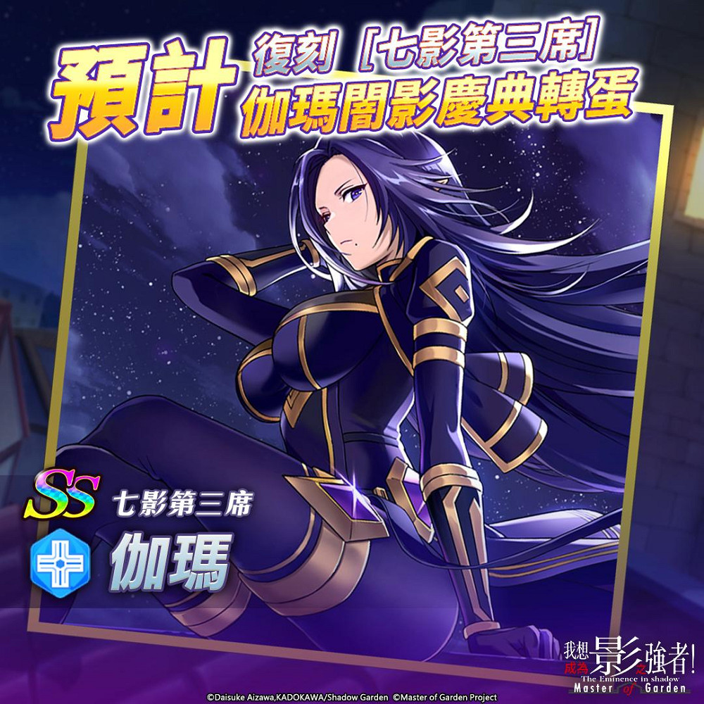 與此同時,繁中版粉絲團也公布了12月份的闇影慶典轉蛋的復刻時間,官方預計於2023/12/07(四),舉辦[七影第三席]伽瑪闇影慶典轉蛋,缺少藍色屬性輔助角色的務必要抓緊時間入手!