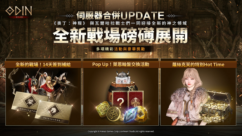 《奧丁:神叛》 期盼戰士們都能在新伺服器內展開全新的冒險與遊玩體驗,爲此遊戲內也準備了多項精彩活動與豪華禮物。