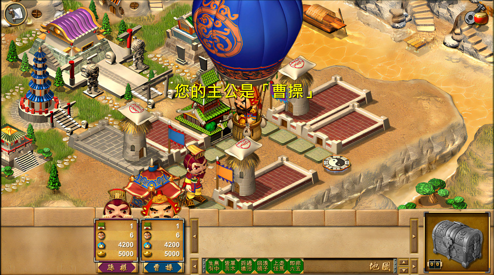 等待其它玩家操作的時間,玩家可以查詢自己的城池及武將訊息,若其它玩家進入單挑、野戰及攻城戰時,沒參戰的主公也可使用計謀錦囊幫人或害人!而在其它玩家思考時間,我方則進入「等待寶箱」的開啟倒數計時,時間到就可以獲取武將、建築圖、錦囊、士兵或銀兩,讓大富翁遊戲的等待時間變得熱鬧無比!