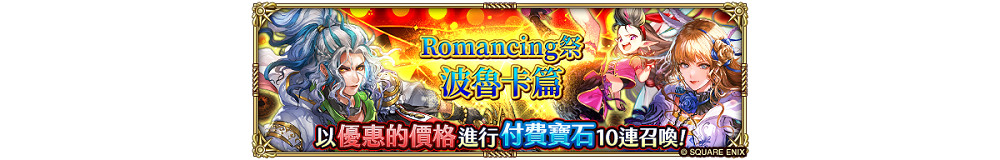 新召喚活動「Romancing祭 波魯卡篇」和「Romancing祭 喬篇」期間限定登場!在本次召喚活動中,玩家有兩種方式可以進行召喚:以免費寶石進行召喚,或以付費寶石進行優惠的階段召喚。在階段召喚中,獲得的 SS 風格更將確定必中 Pick UP 的 SS 風格!
