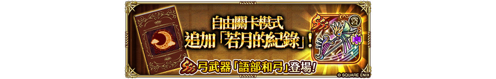 「若月的紀錄」配合版本更新火速開啟!玩家們將可在「自由關卡」模式中進行遊玩。在「若月的紀錄」領域中,透過遊玩關卡可獲得「探索點數」,使用其來打開寶箱,將有機會獲得帶有能力的 SSS 弓武器「語部和弓」!