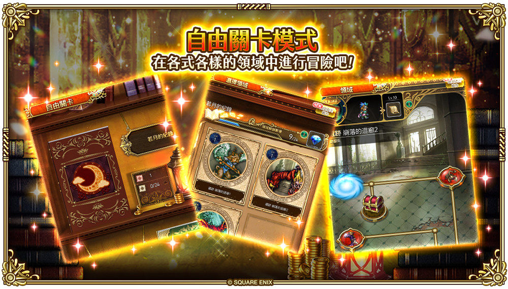 遊玩「自由關卡」的各個領域,都將有機會於通關時獲得數量限定的掉落獎勵——寶石箱來取得更多寶石!