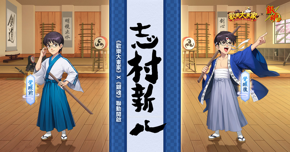 同時,「萬事屋」、「真選組」大東家分部現已隆重開張,五大經典人氣角色「坂田銀時」、「志村新八」、「神樂&定春」、「土方十四郎」、「沖田總悟」將帶著全新覺醒外觀,在同步開啟的聯動玩法中等候東家們的到來,還望東家多多關照!