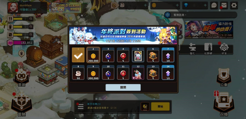 歡慶年末佳節,遊戲內準備了豐富活動以及金價讚的獎勵,期待守護者的踴躍參與,天天登入遊戲領取特別獎勵吧!