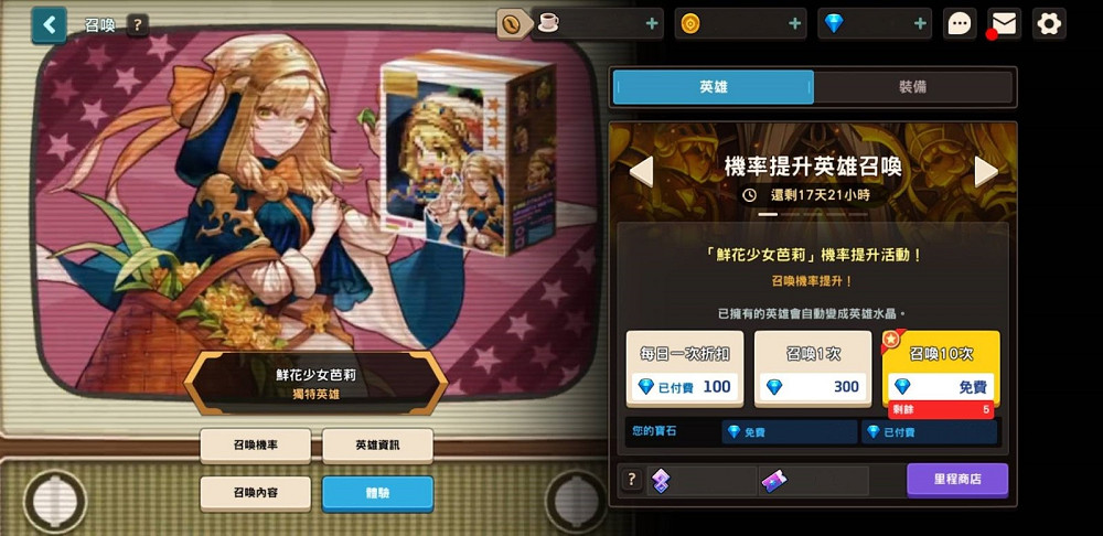 免費50抽召喚活動是《守望傳說》為所有守護者帶來的貼心年末好禮,守護者每天可進行10抽,最多5天,共50抽。活動期間,守護者可自由選擇要隨機召喚英雄或裝備。這次卡池內不但有許多聖誕主題的英雄,還新增了新的五星裝備「皮諾」,是鮮花店少女芭莉的專屬武器。守護者迫不及待想參加這次的活動吧!於2023年12月26日至2024年1月8日期間登入遊戲即可參與活動!
