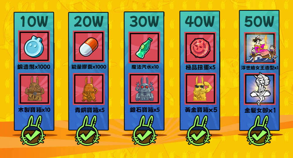 《兔星保衛戰》已達到50萬預約門檻,指揮中心在此宣佈,S級角色「金髮女郎」、限定造型「浮世繪女王造型」正式解封,人人均可免費獲得!除了最高預約好禮之外,無論是高機率獲得SS級兔星人的極品扭蛋、各大寶箱,抑或是強化戰力的鍛造幣、能量膠囊或是魔法汽水,也都將一併贈送給來應援的英雄玩家們,畢竟玩家們越強,能保衛兔星的機率就越高囉!