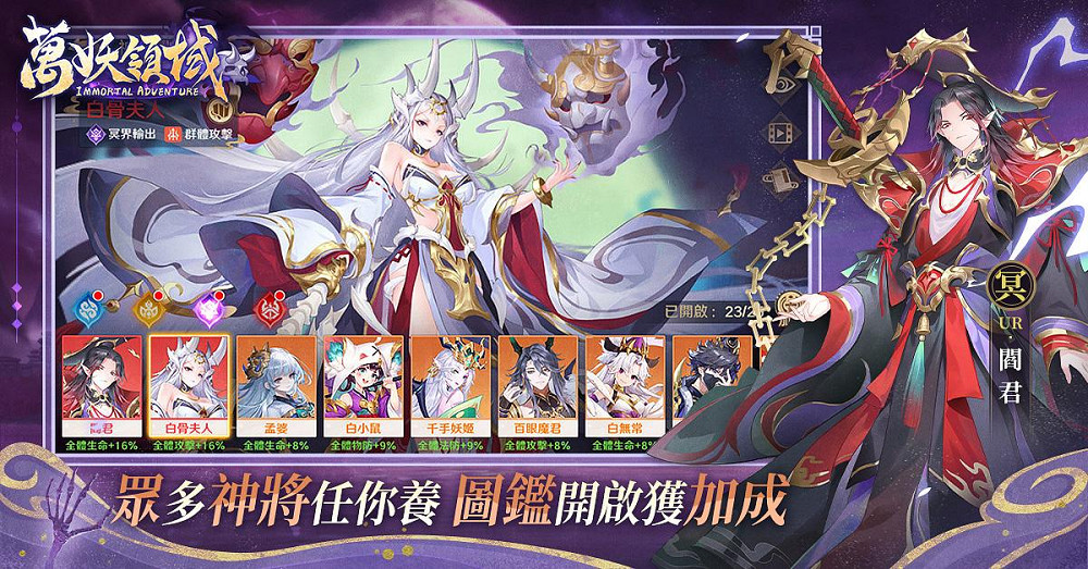 (圖2:《萬妖領域》有眾多神將任你養成 圖鑑開啟還可獲得額外加成)