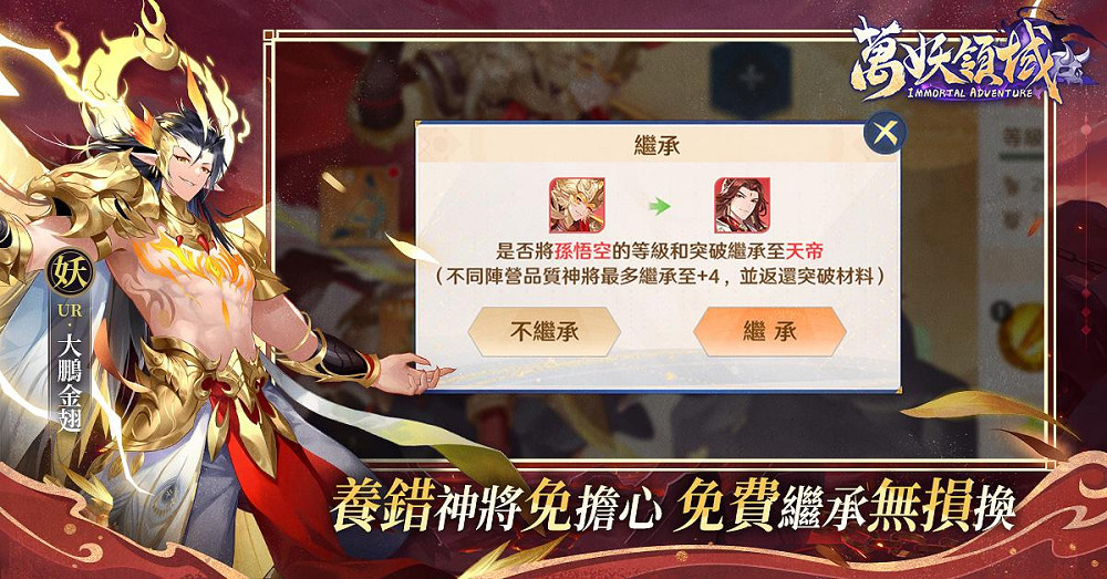 (圖3:在《萬妖領域》不必擔心養錯神將,免費繼承無損更換)