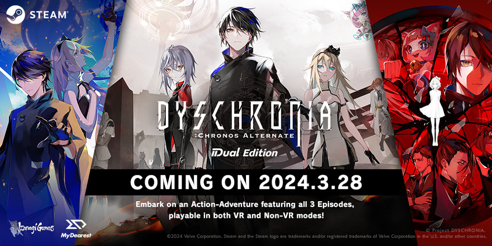 IzanagiGames, Inc.(位於東京都江東區,製作人兼 CEO:梅田慎介)宣布,與MyDearest Inc.(位於東京都中央區,CEO:岸上健人)共同開發的Steam《虛時異境:迷離時空 雙重版》,將於2024年3月28日正式發售。《虛時異境:迷離時空 雙重版》完整收錄3章劇情,VR&Non-VR探案冒險遊戲帶給你雙重體驗!