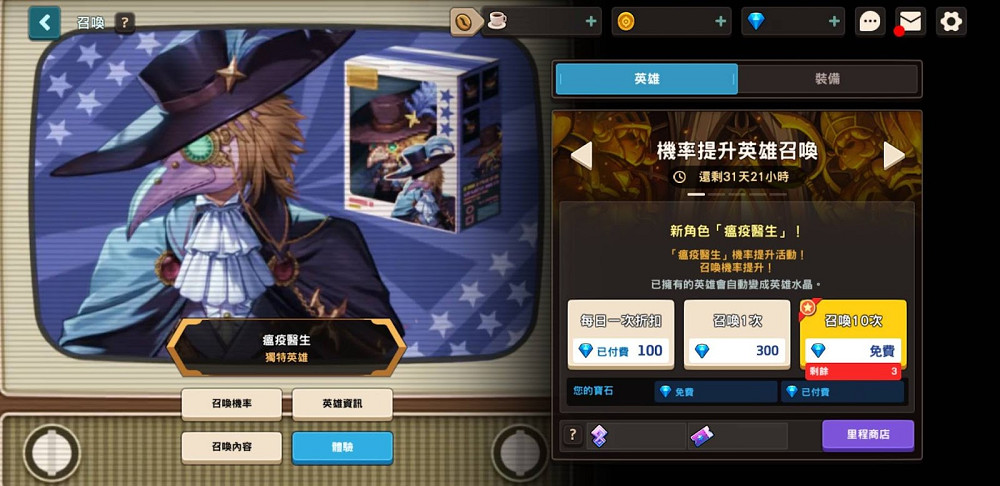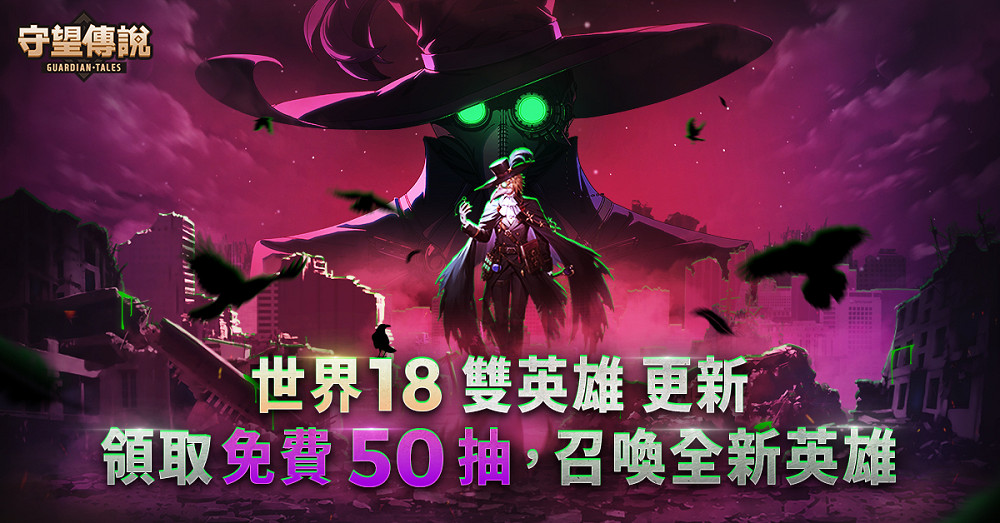 Kakao Games旗下史詩級冒險RPG《守望傳說》公布了一條令人振奮的消息,遊戲近期的改版中,不僅更新了守護者期盼已久的世界18「雙英雄」,同時也推出與主劇情密不可分的新英雄「瘟疫醫生」。而為了慶祝此次改版,《守望傳說》準備了期間限定免費50抽活動給所有守護者。守護者可於App Store及 Google Play Store中免費下載主打懷舊像素風格以及豐富挑戰元素的《守望傳說》。
