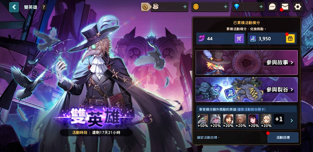 瘟疫醫生再次現身在世界18,昔日的英雄如今卻成了神祕人物。他因在其他世界做出許多操控行為而聞名,而其故事在「雙英雄」將出現重大轉變。他一連串的行為讓天堂堡壘有了劇變,成為遊戲故事的轉捩點。玩家將深入探究其身分轉變的幕後真相,以及引起騷動的主因。