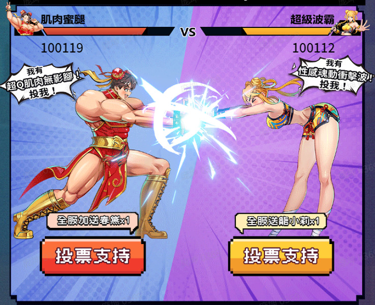 完成簡單的一系列小任務即可獲取投票次數,選擇你喜愛的角色,參與投票後全服加碼送獲勝角色!愛她,就把她帶回家~ 注意了,邀請好友參加可以獲得大量的投票機會哦,千萬不要錯過!僅僅投票肯定是無趣的,我們還設置了超級大獎送給參與的玩家們,聽說投票次數越多,抽到終極獎勵的可能性就越大哦!