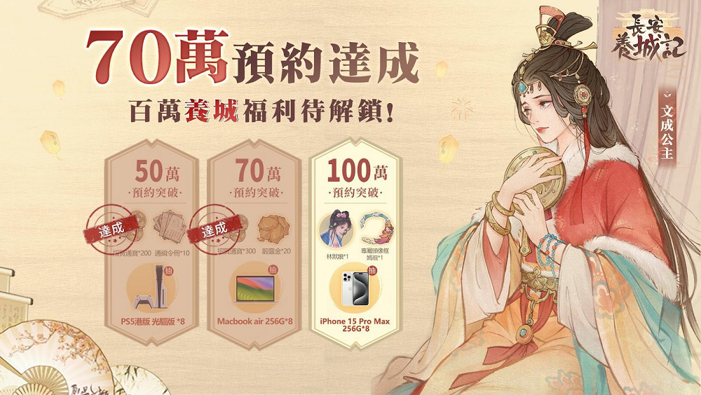 古風療癒系養城手機遊戲《長安養城記》,今 (1) 日正式宣告達成70萬預約人次里程碑,「MyCard點數卡*10萬點、PS5港版 光驅版」等多項預約達成獎勵,也將於3月5日遊戲上線後開放兌領,同時官方也揭曉神秘金牌代言人身份,將由金牌女神「林心如」化身「長安掌事」,輔佐各位城主們一同踏上療癒養城之旅。