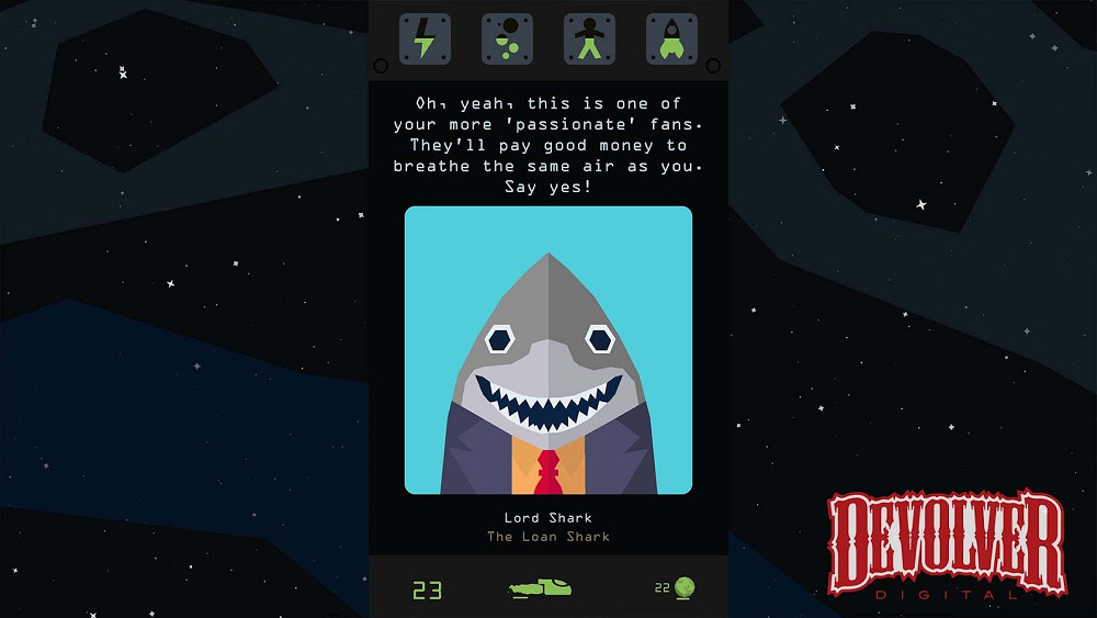 與高達 70 位別具特色的角色們相遇,包含你的經紀人、鯊魚大帝(Lord Shark)、學術派軟體動物 Strombo、太空熊熊 Gron 等等,當然還有你的船員們和船上的萬事通 AI。