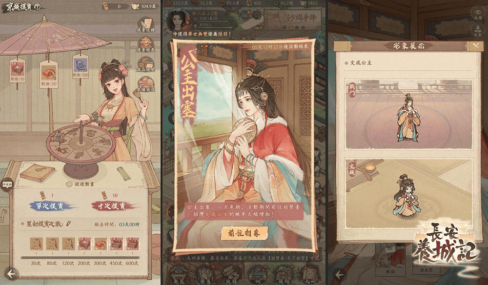 在急需更多資源支撐作戰優勢的「九州」攻城玩法中,官方也同步推出各項優惠獎勵活動支援城主完成霸業,只要透過「京城撲賣任務」取得「撲賣憑證」,轉動轉盤進行抽獎達一定次數後,便可獲得豐厚遊戲獎勵,任務簡單不費力,分分鐘就能輕鬆養城。不僅如此,在「公主出塞」活動中,前往招賢台成功招攬「文成公主」將有助於城主光速累積戰力,獨霸九州C位,君臨天下也將指日可待。