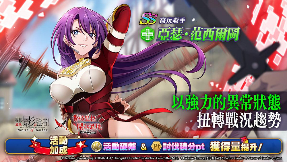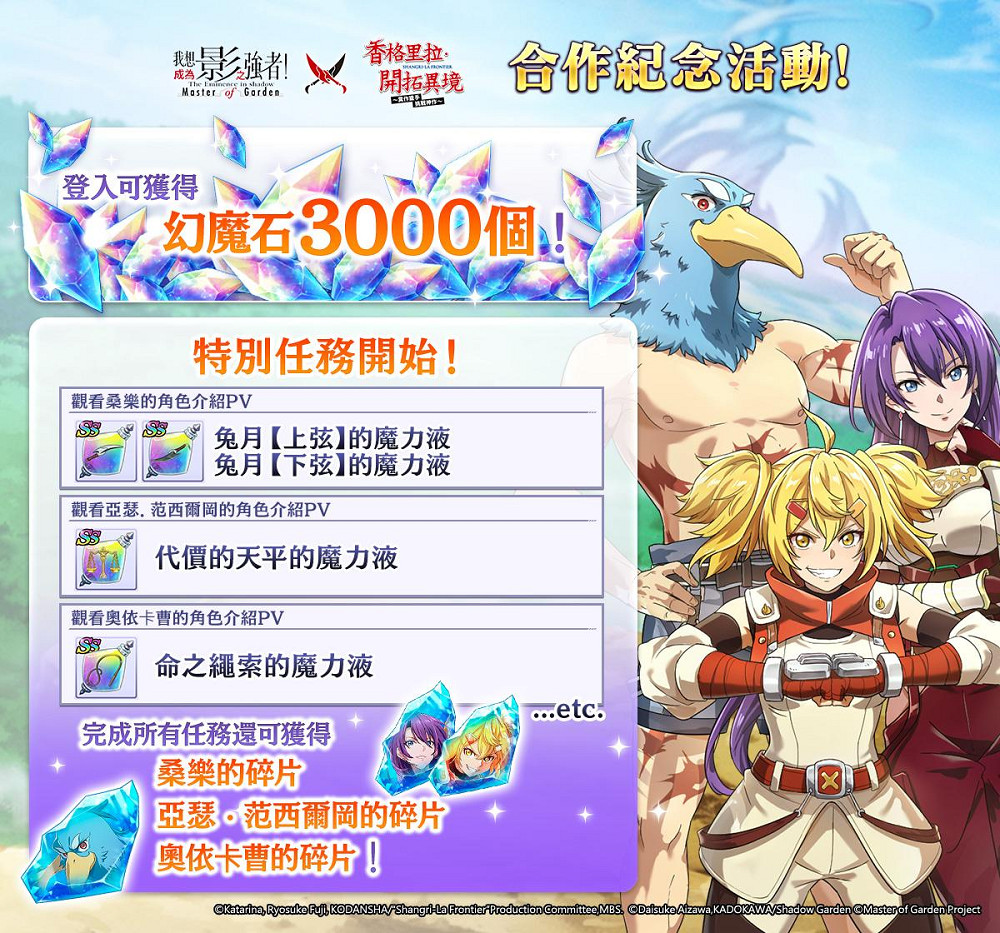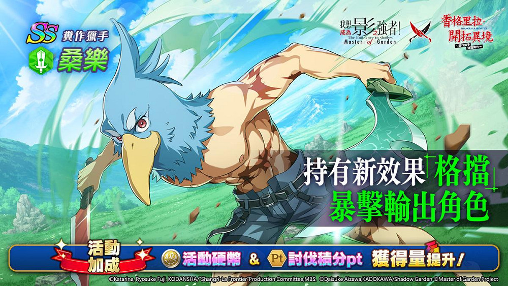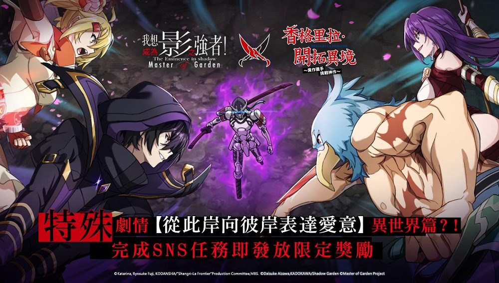 由大宇資訊旗下星宇互娛所代理之《我想成為影之強者!Master of Garden》,正式於3月21日推出與『香格里拉・開拓異境』合作活動「糞作獵手,影之邂逅」。