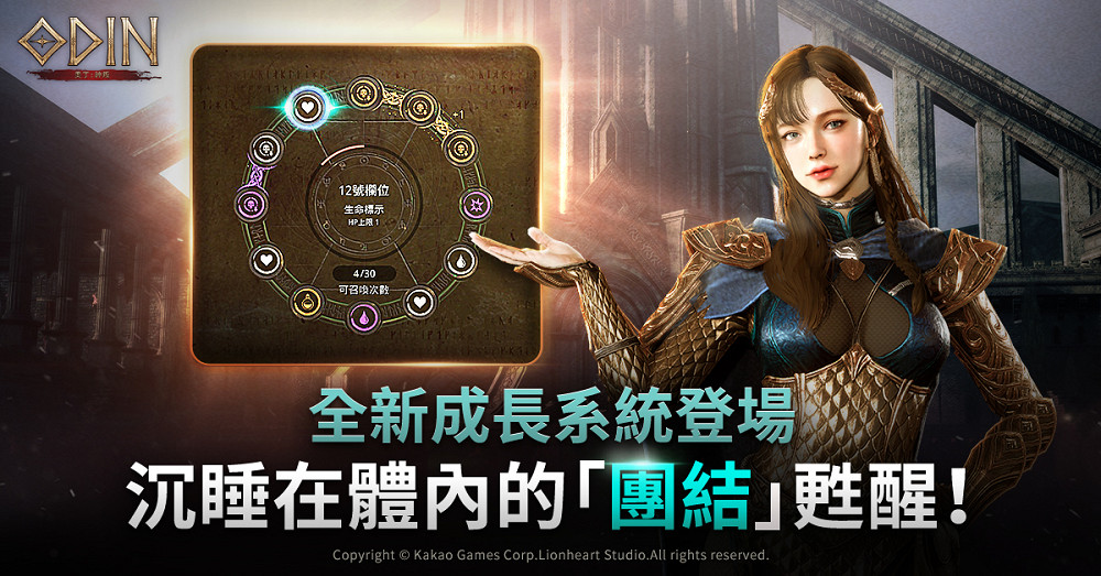 在多樣化的2週年改版更新內容中,除了新增了各職業的「新被動技能」以及新的「神話階級武器形象」之外,現在起透過全新的「團結」成長系統,戰士們還可以召喚富含特殊力量的印記,團結並反覆成長來獲取更加強大的力量。與此同時,現有的符石系統也同樣做了升級,不僅擴張了3個符石套裝的配置欄位,更增加套裝強化系統與其相關的達成成就!其他優化及各項2週年改版更新的詳細資訊,再請透過《奧丁:神叛》官方遊戲指南做進一步的了解與查詢。