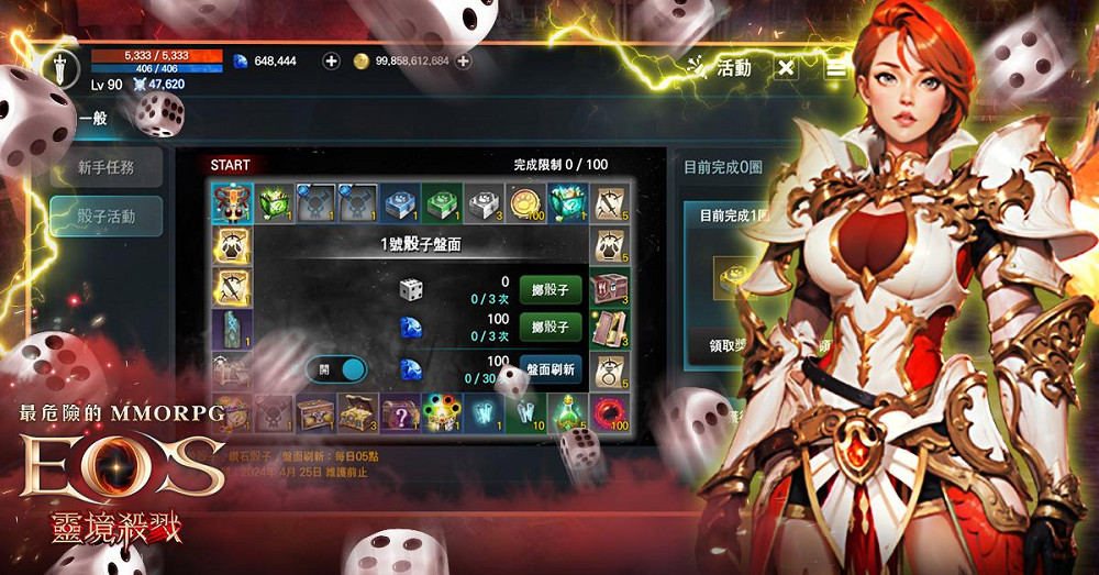 前次登場的骰子活動這次也有,同樣的玩家完成每日骰子任務即可得到3次骰子機會,另外也可使用鑽石來額外獲得3次骰子機會,骰子活動的獎勵有抽特級寵物卡箱子、特級未確認怪物信物、抽超特級寵物卡箱子、高級寵物寶珠箱子、副本時間加值券選擇箱子等物品。還有老玩家最關注的角色伺服器轉移,將特別開放4/18-4/19兩日,在消耗一定的鑽石後即可進行伺服器轉移。以上多種活動,玩家千萬不能錯過,戰力的提升就是靠每日準時參加活動,點點滴滴累積起來的。