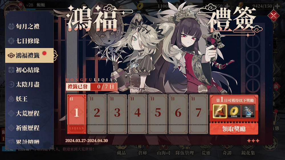 本次開服限定卡池機率UP,推出「妖王・無支祈」與「太陰月盡・夕」兩張重量級SSR鏡靈。