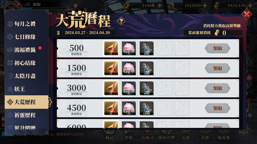 圖6:《山海鏡花》大荒曆程中可獲得大量鏡心與培養材料