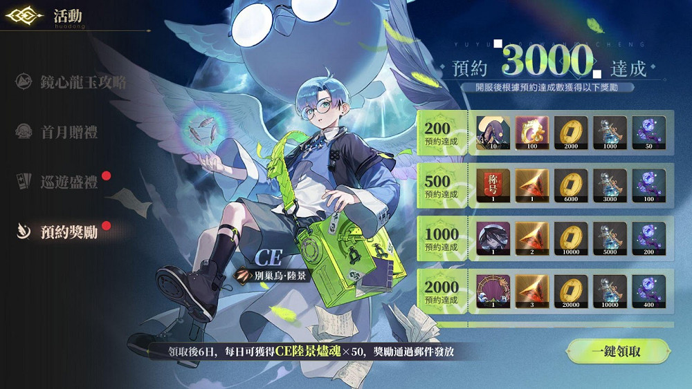 開局所拿到的角色是玩家非常在意的點,常常為了首抽一直不斷地創帳號,就為了想要在第一時間拿到心儀的角色。在《山海鏡花》鏡花中,當玩家通過「主線・卷一」任務後,系統就會開啟「初入大荒之禮」的特殊卡池,免費贈送玩家十連抽,必出SSR鏡靈角色,如果沒抽到想要的鏡靈,還可以直接重抽,不用特別創帳號重新抽取。玩家除了要留意抽到的SSR鏡靈之外,也要留意其他抽到的鏡靈角色,對於初期搭配隊伍會有很大的幫助。