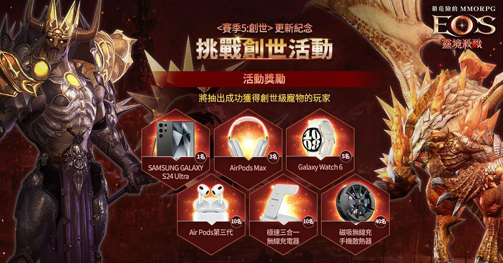 首先值得一提的是,為慶祝寵物創世等級的擴張,官方現正推出「創世挑戰活動」,只要成功獲得「創世」寵物的天選者,將有機會得到 SAMSUNG GALAXY S24 Ultra , AirPods Max等豐厚獎品。