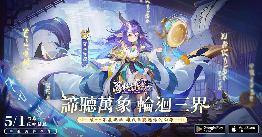 《萬妖領域》將於5/1更新「萬象之聲」活動,限時三天可抽取首位跨界輔助神將「諦聽」,相傳她天生繼承了歷代祖先的智慧與記憶,擁有聆聽萬物心聲的能力;雖隸屬於冥界陣營,但「諦聽」搭配任意UR神將可啟動連攜技能,提升自身免傷,並且與任意神將共同上陣也可啟動羈絆屬性,是不被陣營所限制的跨界神將;「諦聽」的傳承法術為輪迴契約,裝備該技後可於戰鬥開始前,幫除了自身以外己方攻擊最高的神將附加契約效果,使其受到攻擊時免疫部分傷害,並將依定比例的免疫量轉化為生命同時治療契約雙方;而諦聽全新時裝「墨染杏華」也同步上架,不僅好看,還可增加戰力唷!