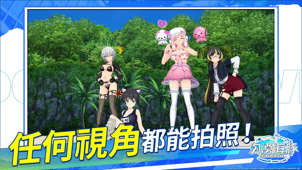 在為心儀的海豚娘更換衣裝過後,教練們還可以到「照相館」拍下值得紀念的畫面,本作提供了超高自由度的遊戲體驗,不僅背景可以更換,甚至連海豚的站位、姿勢、表情、視線方向、特效等都可以由教練調整,人人都能化身海豚娘攝影大師。