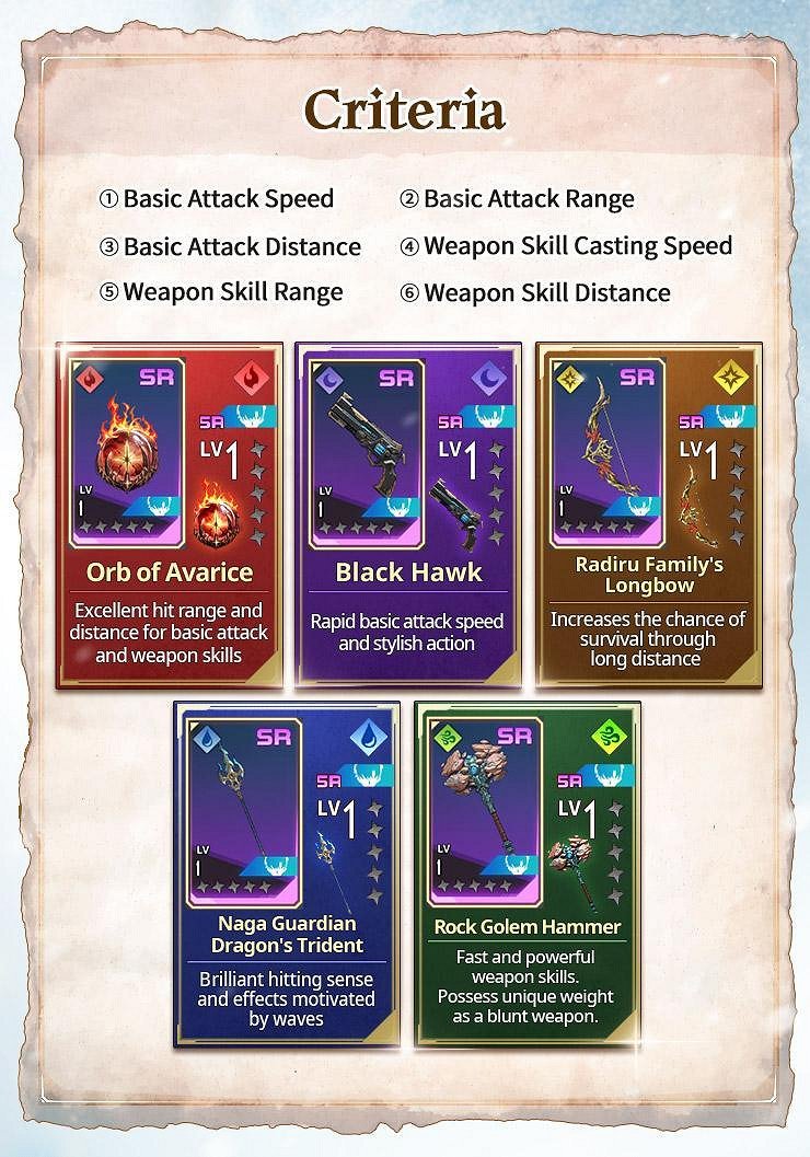 《我獨自升級: ARISE》有眾多武器,供成振宇和其他獵人於遊戲中使用。以下是一些根據速度、射程、基本攻擊距離和武器技能等標準推薦給新手的SR武器: