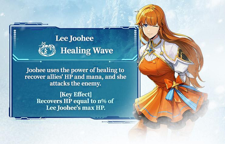 關鍵效果:珠熙恢復於魔法陣上我軍的體力,相當於她最大體力的N%。