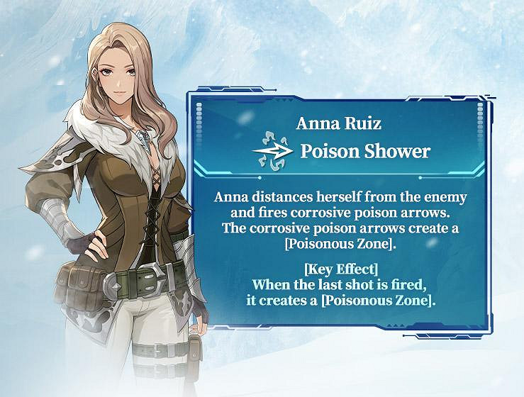 安娜與敵人拉開距離,並射出腐蝕毒箭矢。腐蝕毒箭矢將生成[毒地帶]。
