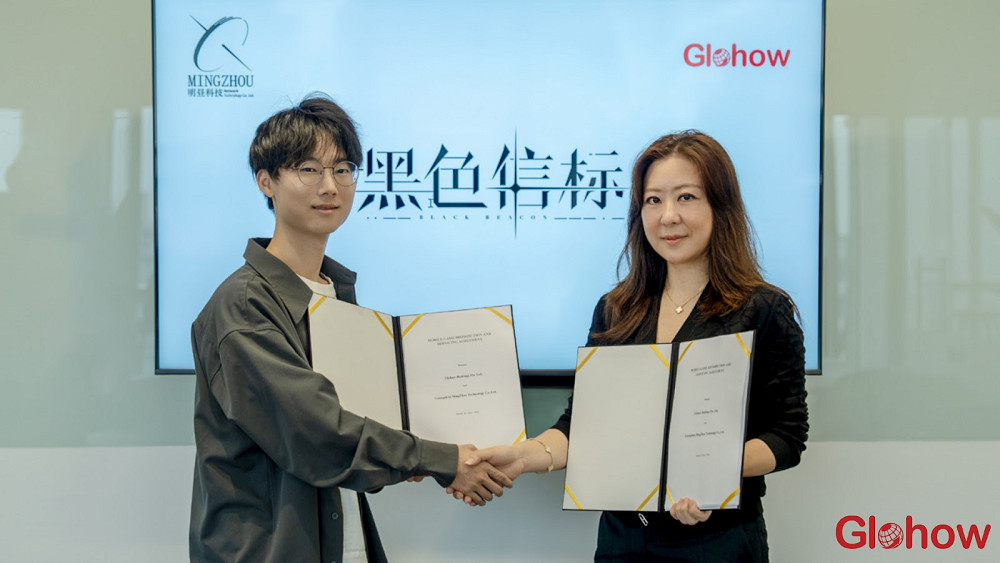 Glohow(代表:Jinny Kim)於 5月 16日(四),正式宣布與明晝網絡科技(代表:劉璽)簽署 《黑色信標》 的遊戲發行合約。