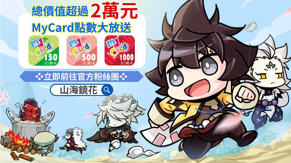 為了回饋許多喜愛《山海鏡花》的玩家們,官方粉絲團目前正在舉辦粉絲專屬活動,粉絲們只要依照活動貼文的規則參與活動,除了可以隨時接收到最新遊戲資訊外,還可以參與總價值兩萬元以上MyCard點數卡的獎品。