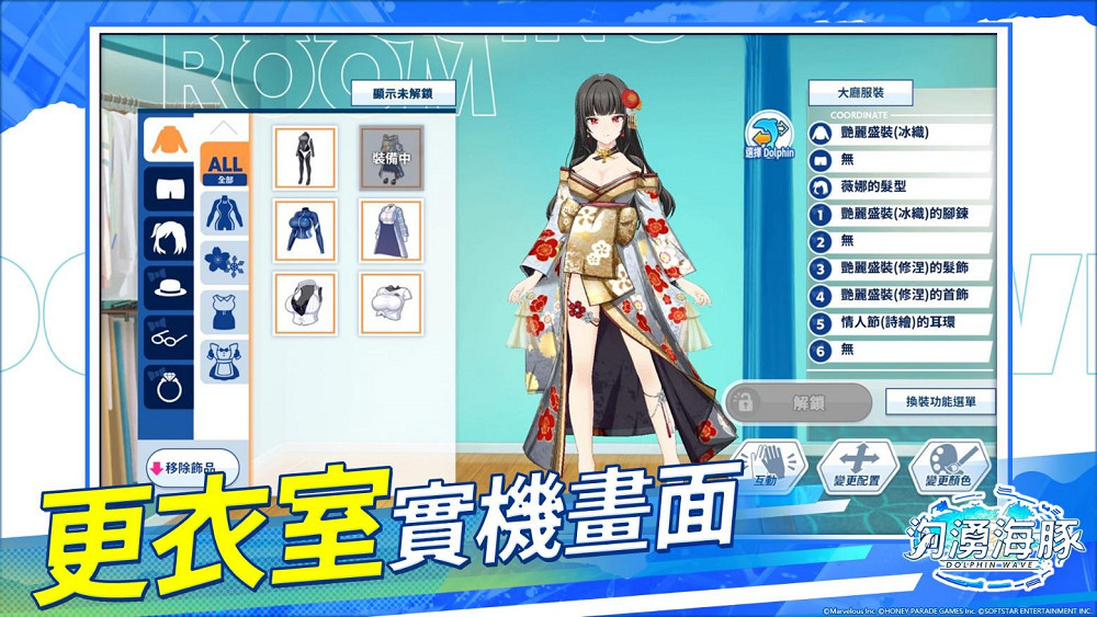 製作人:HONEY∞PARADE GAMES的「換裝功能」因為能「更換顏色」及「變更位置」等具有高自由度而廣受好評,而洶湧海豚中新增了可單獨更換「上衣」和「下裝」,結合過去的功能,真的實現了各種各樣的變化。這部分在開發過程中也有實裝,我們也第一次真實感受到其魅力,因此非常希望大家能親自體驗看看!